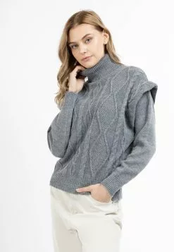 DreiMaster Vintage Pulls à Col Roulé Pull-over Femme Gris Chiné